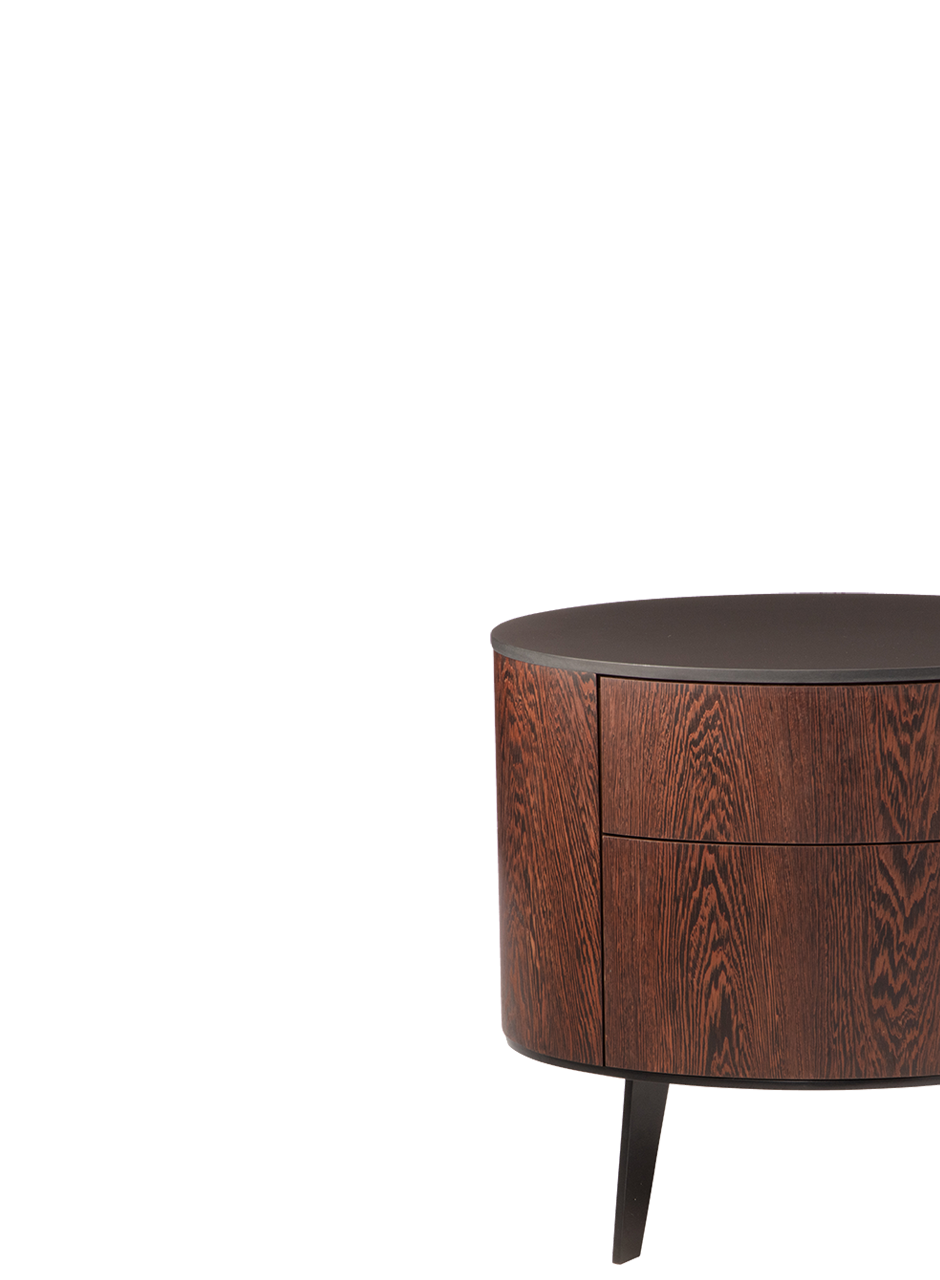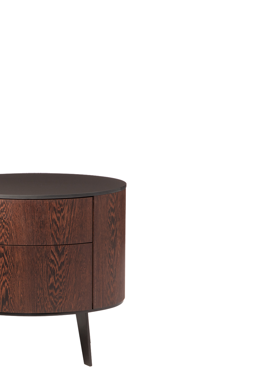 Модельный ряд ULRIKE включает прикроватную тумбу с 2-мя выдвижными ящиками, комоды различной высоты, а также TV тумбу. 2 возможных варианта цвета шпонированных поверхностей.